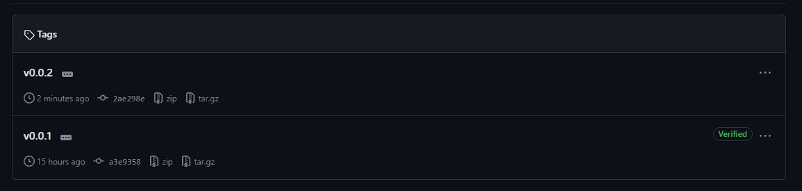 ์ฑ๊ณต์ ์ผ๋ก versioning์ด ์งํ๋๊ณ tag๊ฐ ์ฐํ ๋ชจ์ต์ ๋ณผ ์ ์๋ค.