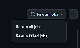 ๊ทธํ actions์์ ์คํจํ action ํด๋ฆญ ํ , Re-run jobs ๋ฅผ ํด๋ฆญํ๋ฉด