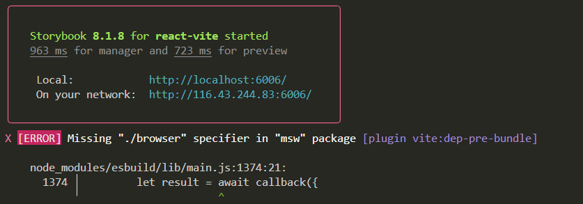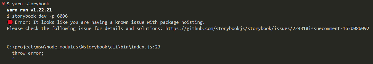 μ€μ ν storybook μ μ€ννλ €κ³ νλ©΄ μλμ κ°μ μλ¬κ° λ±μ₯νλ©΄μ μ€νλμ§ μλλ€.