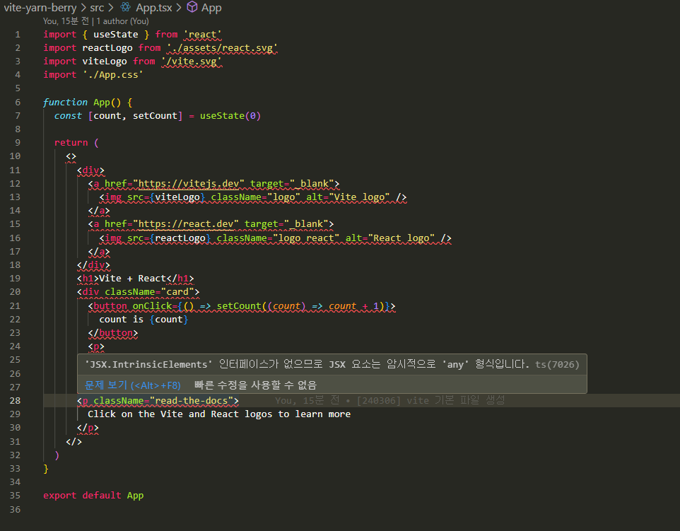 μμ κ°μ΄ JSX.IntrinsicElements μλ¬κ° λ°μνλ€. ν΄λΉ μλ¬λ vscode ~~~~~