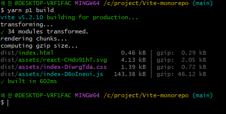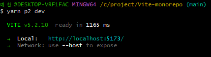 yarn p1 build # project1 ๋น๋ yarn p2 dev # project2 ์คํ