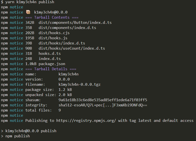 ๊ทธ ํ , yarn {package_name} publish ๋ฅผ ์